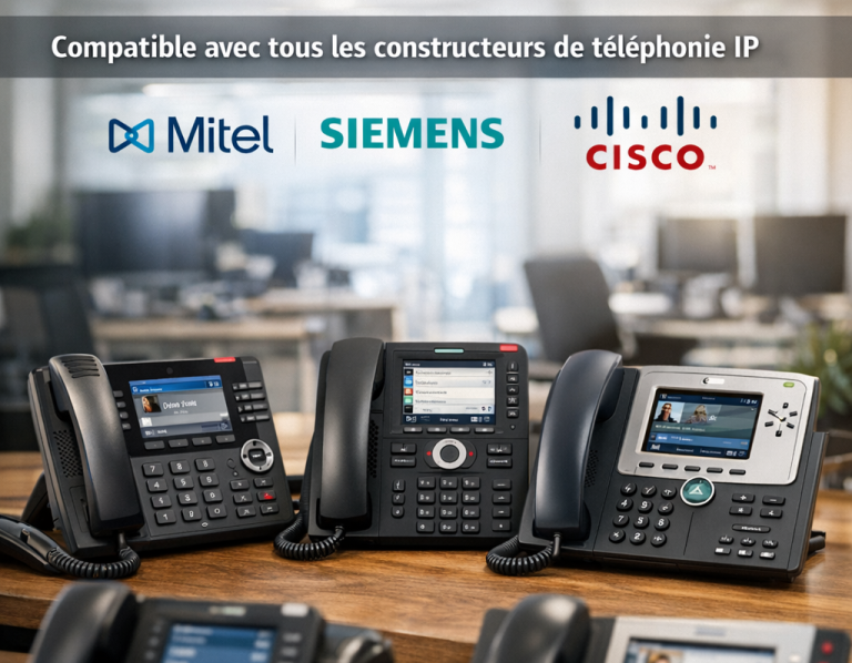 MaVoice est compatible avec tout les constructeur de téléphonie IP. Nous prenons aussi en charge les appareils Mitel, Siemens, Cisco.