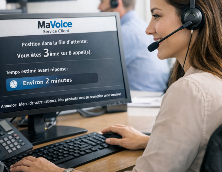 Faite en sorte de ne perdre aucun appel, grâce au files d'attentent interactive vos client sont informé en temps réel de leurs placement, vous pouvez aussi faire en sorte de diffuser des annonces de courtoisie.